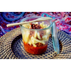 Spécialité de saison INGREDIENTS :salade elabore selon le marche et la saison avec batonnets de cantal et de brebis PREPARATION :Remuer le bocalDeclipser et deguster!!!